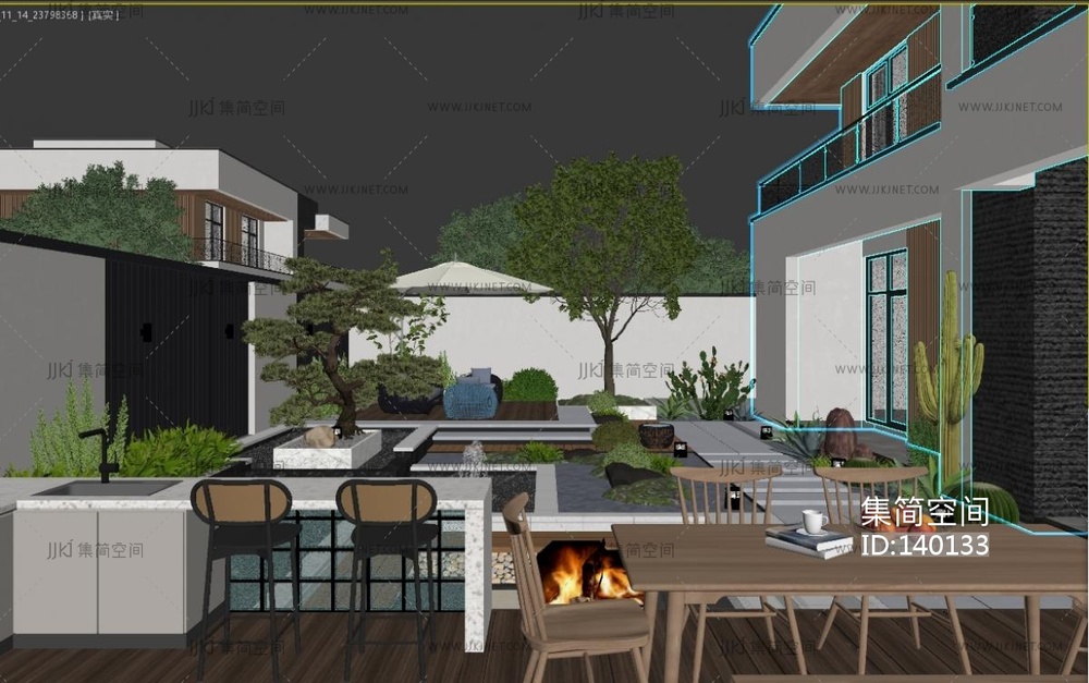 现代居家庭院,庭院景观,别墅景观3D模型 3d模型下载 [模型ID:140133]
