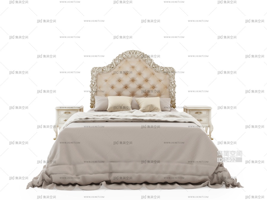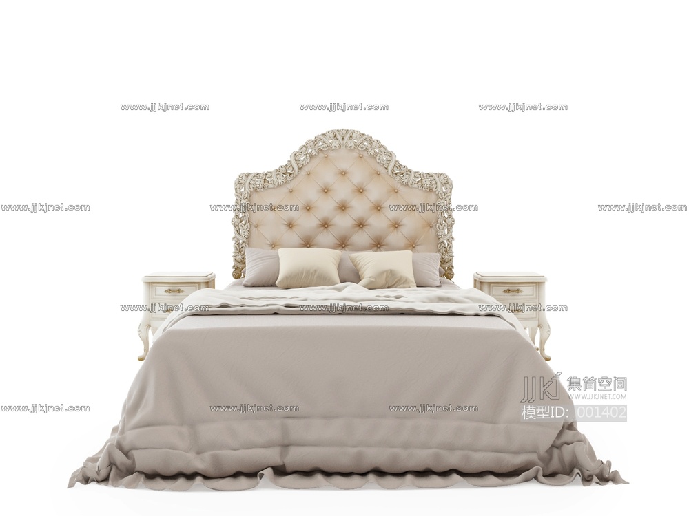 019欧式双人床 3d模型下载 [模型ID:1402]