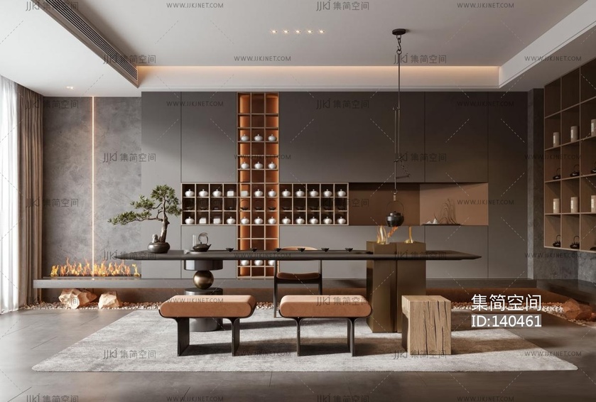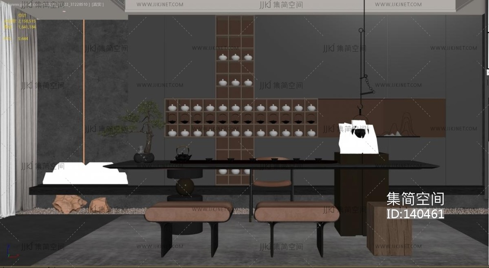 新中式茶室 3d模型下载 [模型ID:140461]