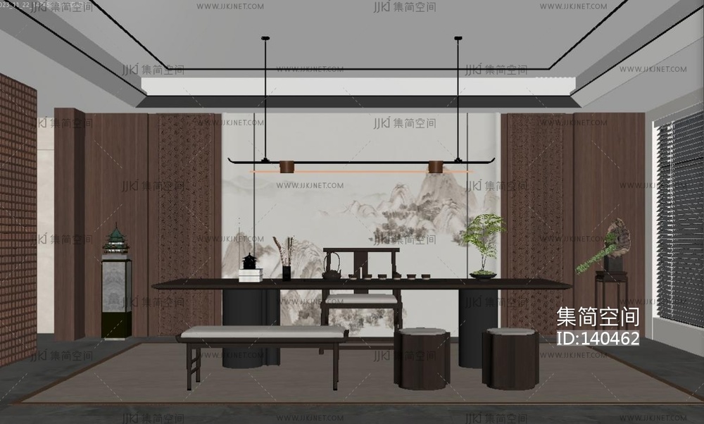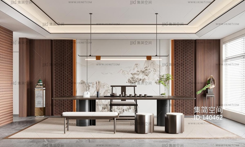 新中式茶室_ 3d模型下载 [模型ID:140462]
