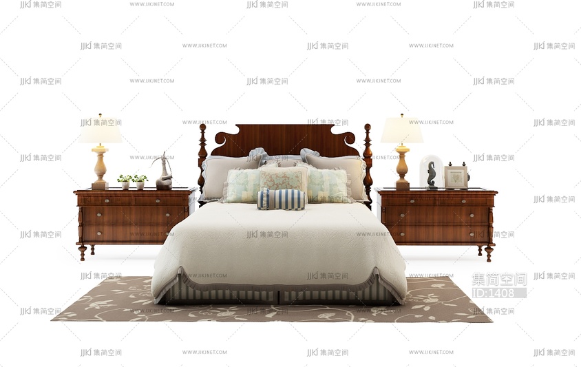 025美式双人床 3d模型下载 [模型ID:1408]