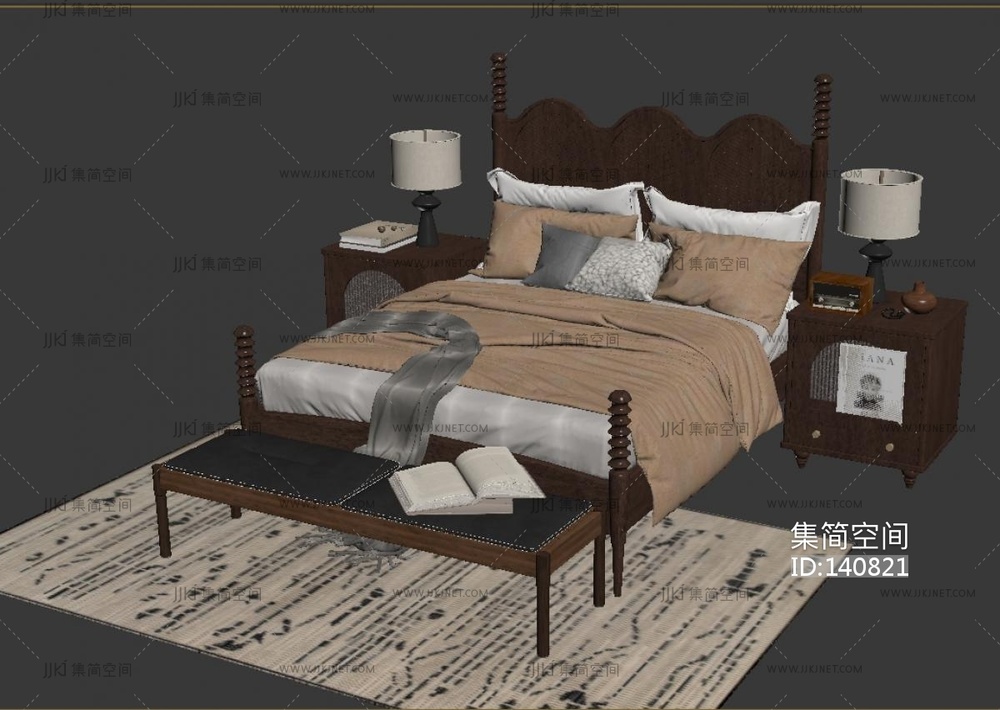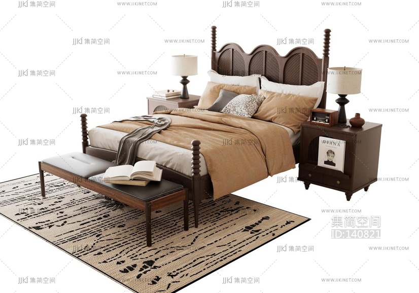 美式中古风双人床 3d模型下载 [模型ID:140821]