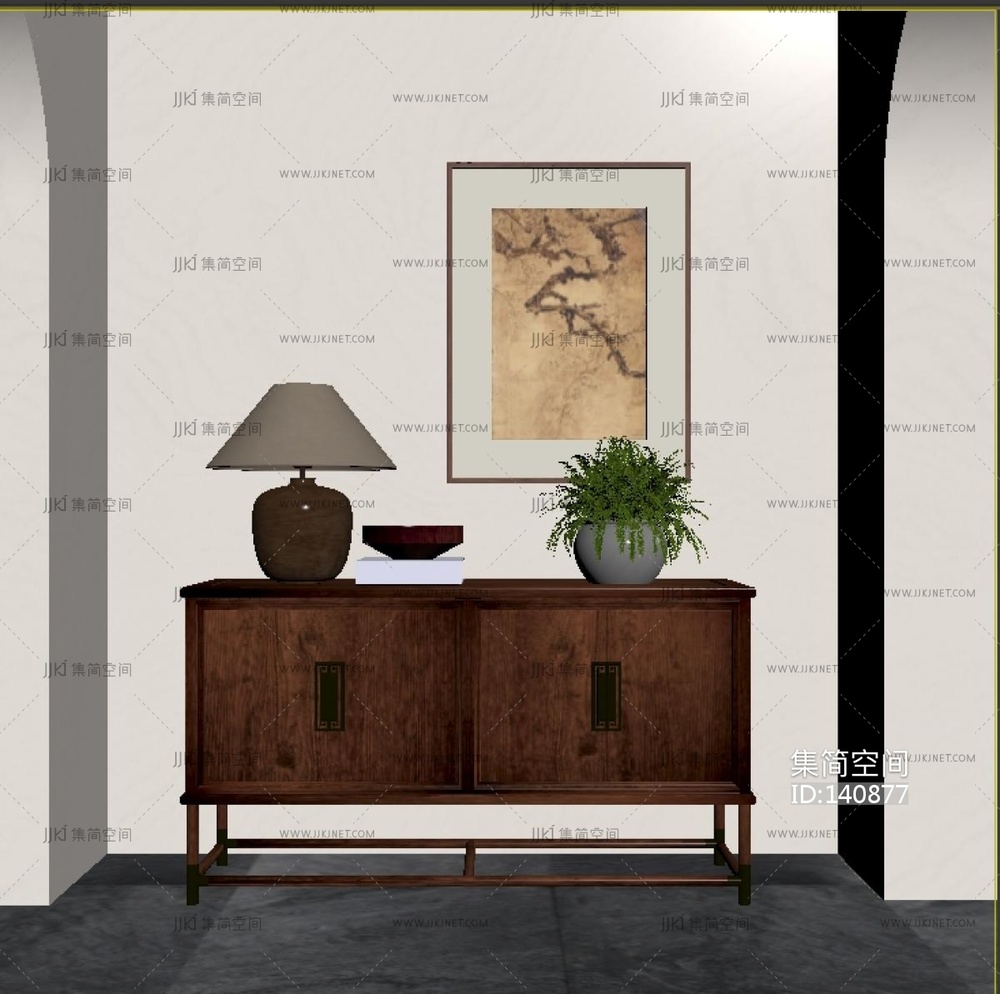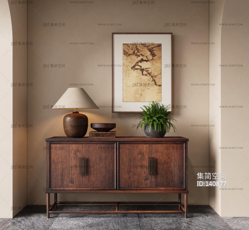 侘寂中古风玄关柜 3d模型下载 [模型ID:140877]