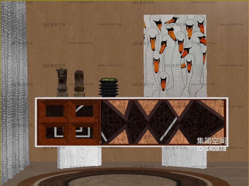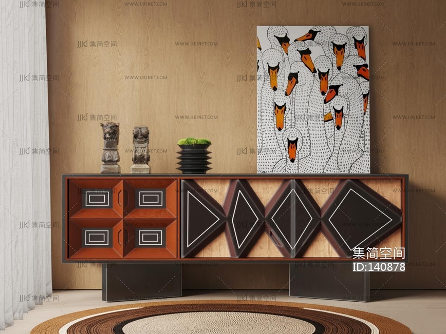 侘寂风玄关柜 3d模型下载 [模型ID:140878]