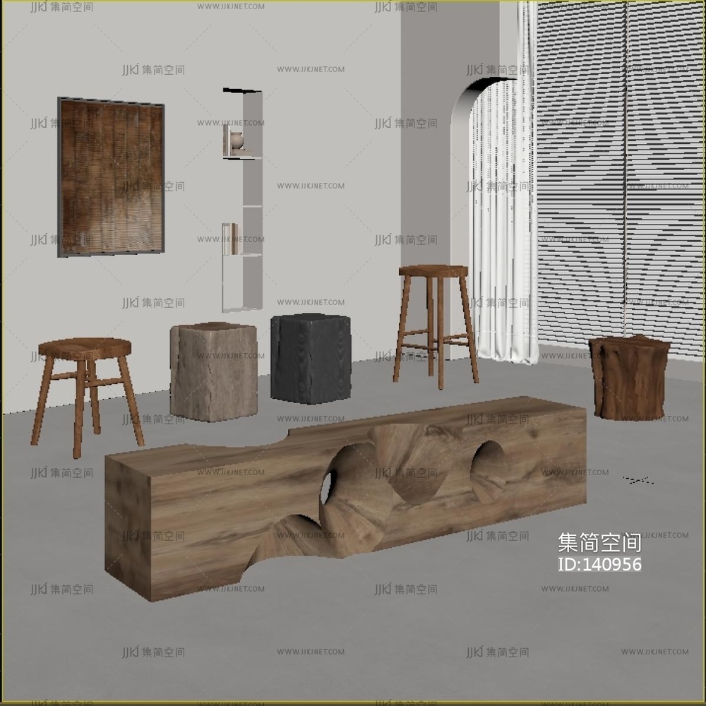 现代实木凳子,原木凳子 3d模型下载 [模型ID:140956]