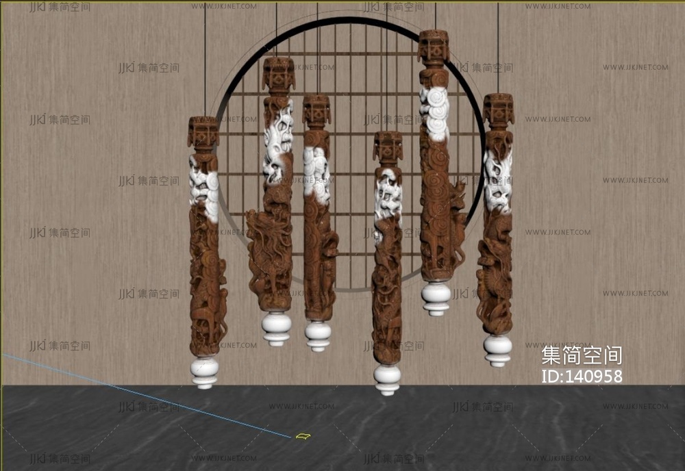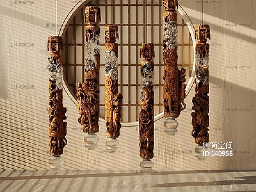 新中式室内雕塑装饰,雕塑吊饰,木雕crrr 3d模型下载 [模型ID:140958]