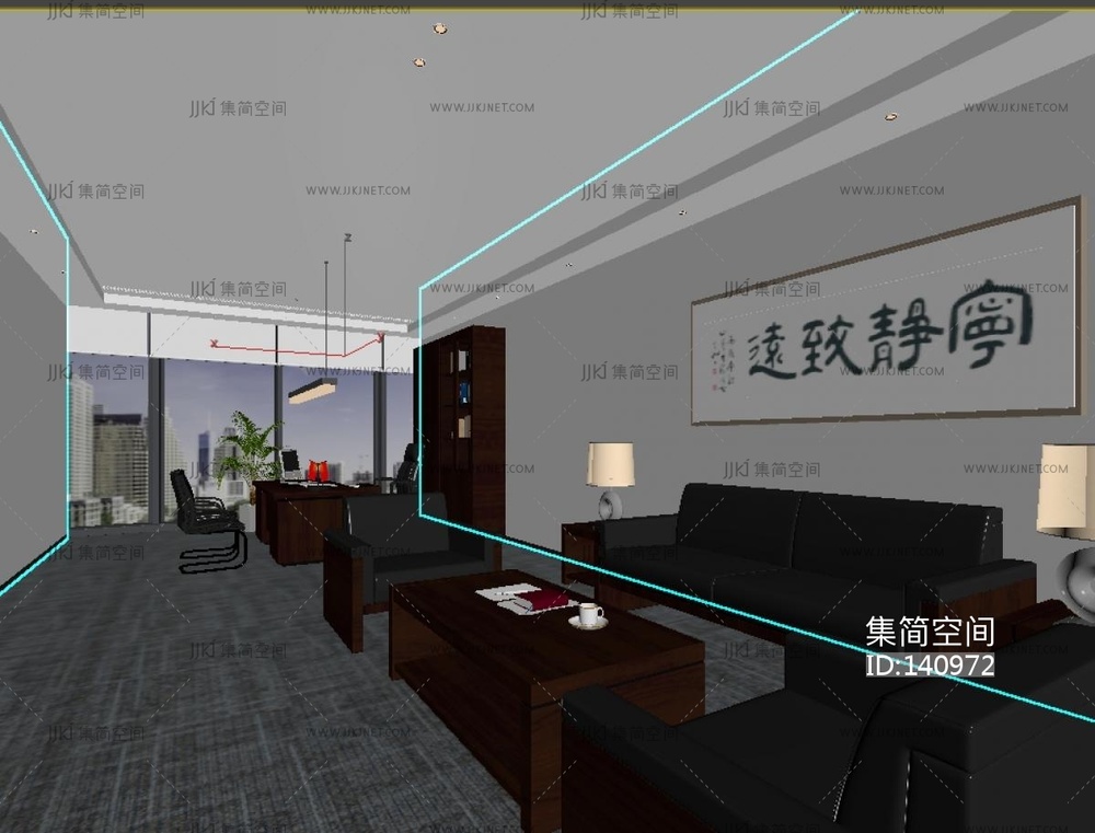 新中式事业单位领导办公室 3d模型下载 [模型ID:140972]