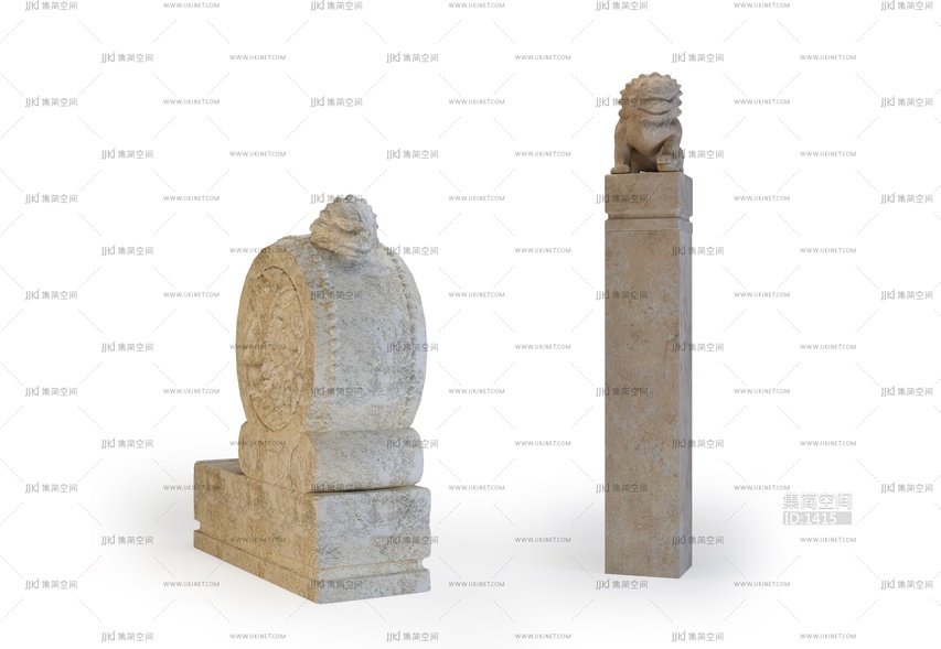 005-10-16-石鼓,拴马桩石狮子雕塑 3d模型下载 [模型ID:1415]
