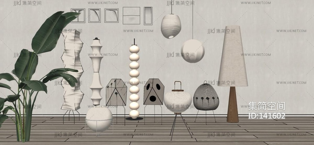 日式灯具组合,落地灯,吊灯SU模型 su草图模型下载 [模型ID:141602]
