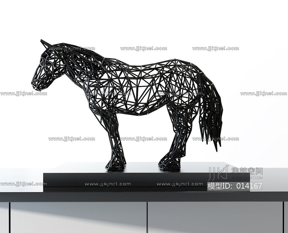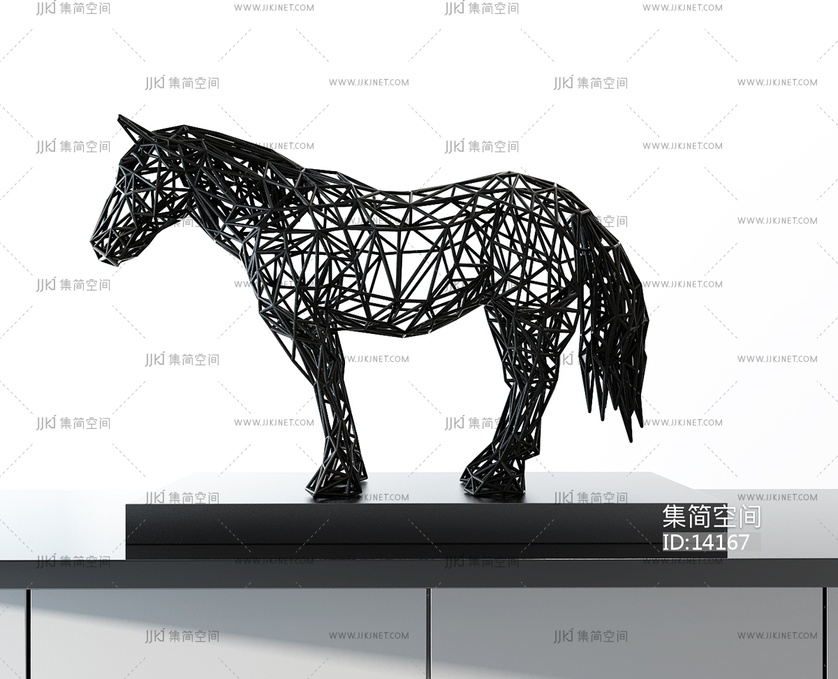 H93-1201黑色铁艺工艺品马摆件 3d模型下载 [模型ID:14167]