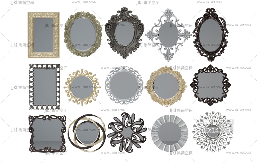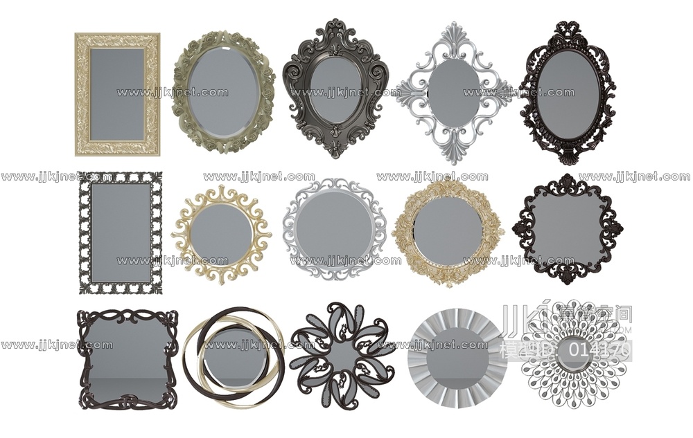 H96-1201欧式雕花装饰镜子组合 3d模型下载 [模型ID:14170]