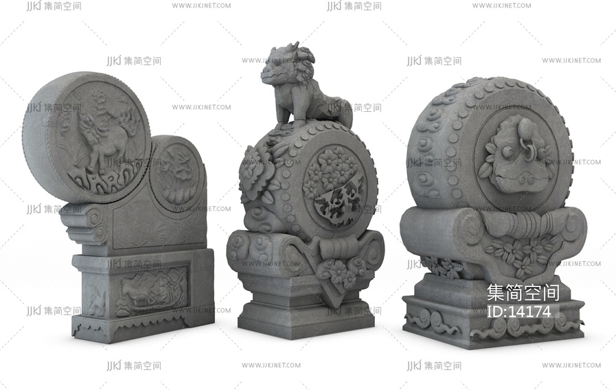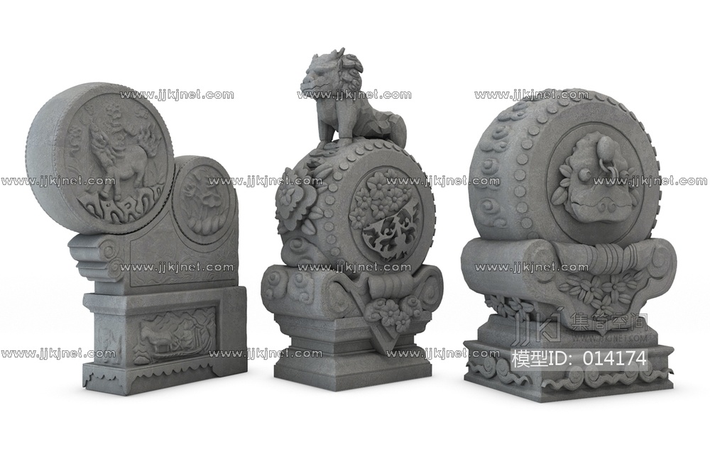 H100-1201新中式抱鼓石鼓石雕塑组合 3d模型下载 [模型ID:14174]