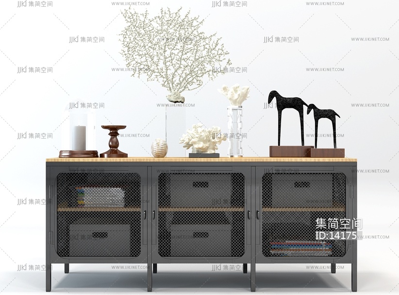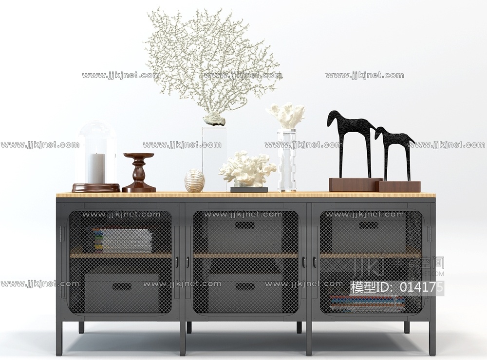 H101-1201工业风铁艺斗柜玄关柜装饰柜珊瑚摆件组合 3d模型下载 [模型ID:14175]