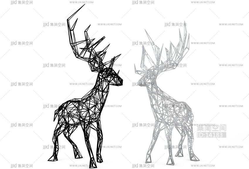 H109-1201现代鹿雕塑 3d模型下载 [模型ID:14183]
