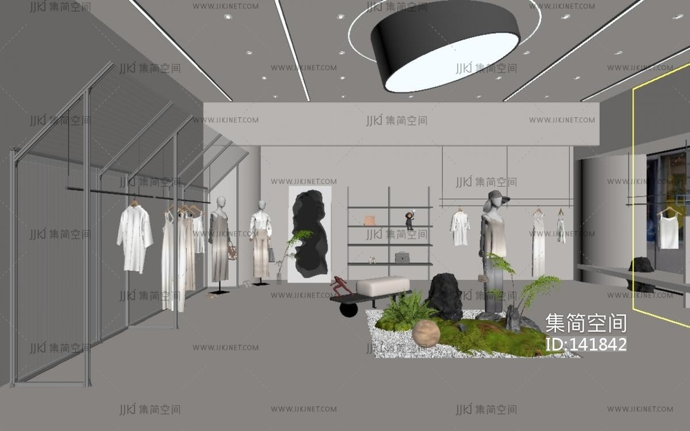 现代商场过道 显示屏 凳子 石头3d模型下载