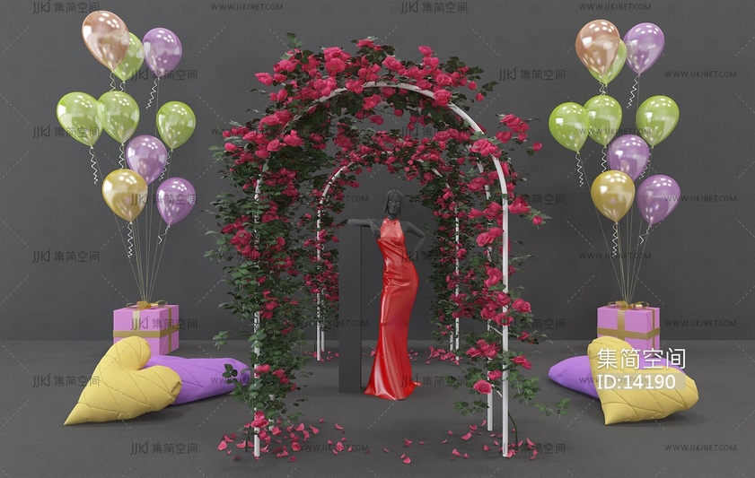H116-1201现代美陈花环花门气球婚礼陈设 3d模型下载 [模型ID:14190]