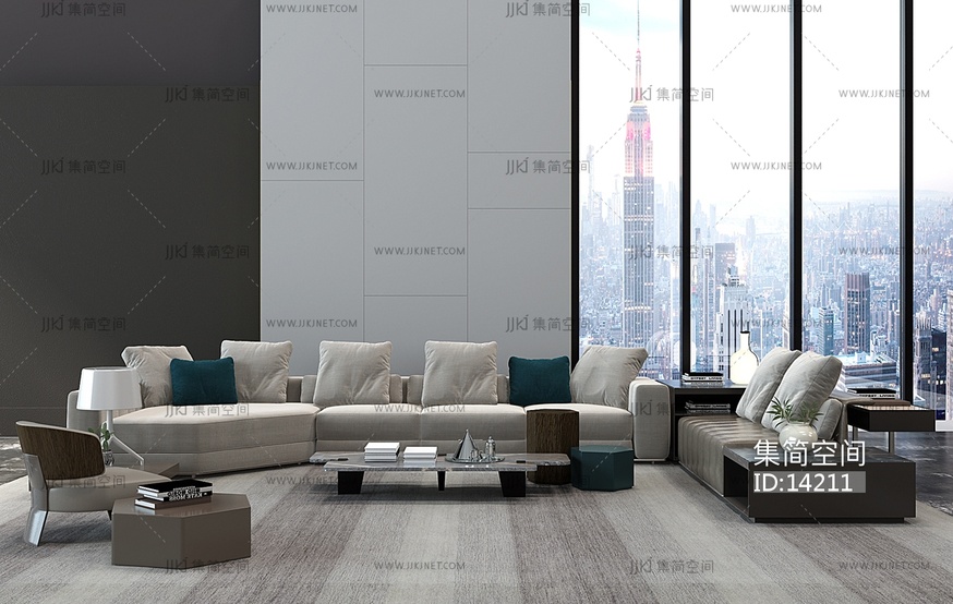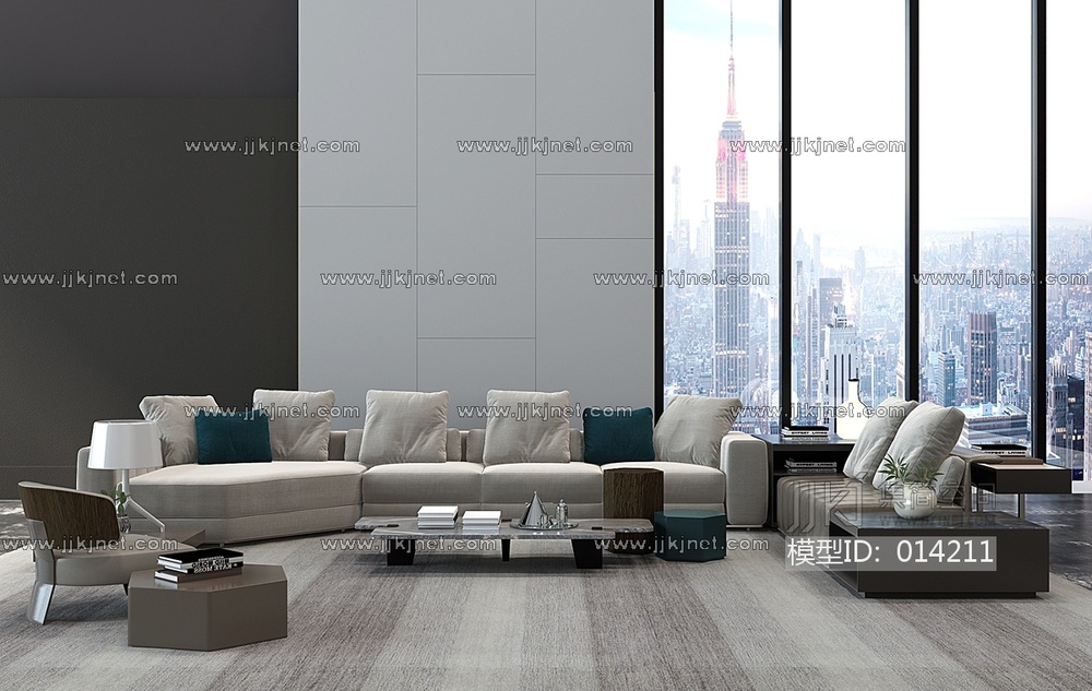 H150-1201现代沙发茶几组合 3d模型下载 [模型ID:14211]
