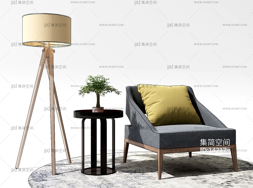 H172-1201休闲椅边几落地灯组合 3d模型下载 [模型ID:14217]