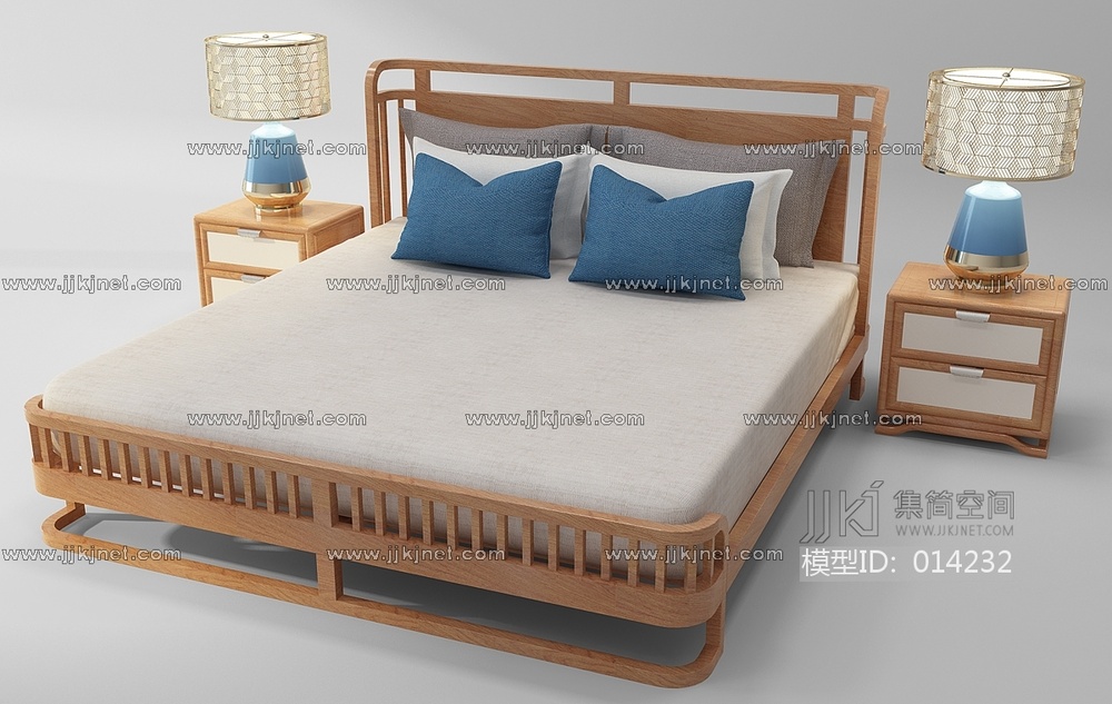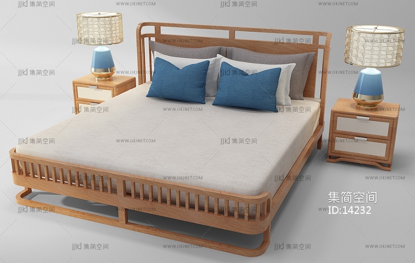 H03-1225新中式床床头柜台灯组合 3d模型下载 [模型ID:14232]