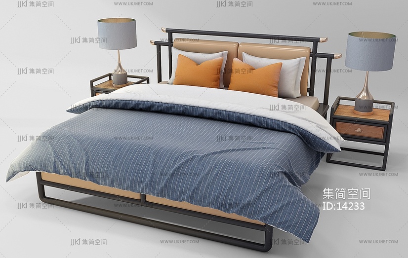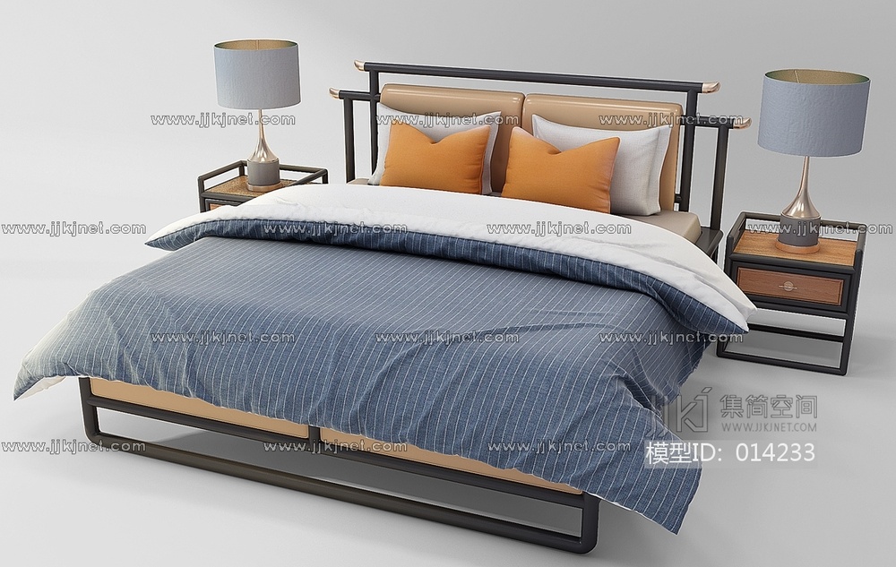 H04-1225新中式床床头柜台灯组合 3d模型下载 [模型ID:14233]
