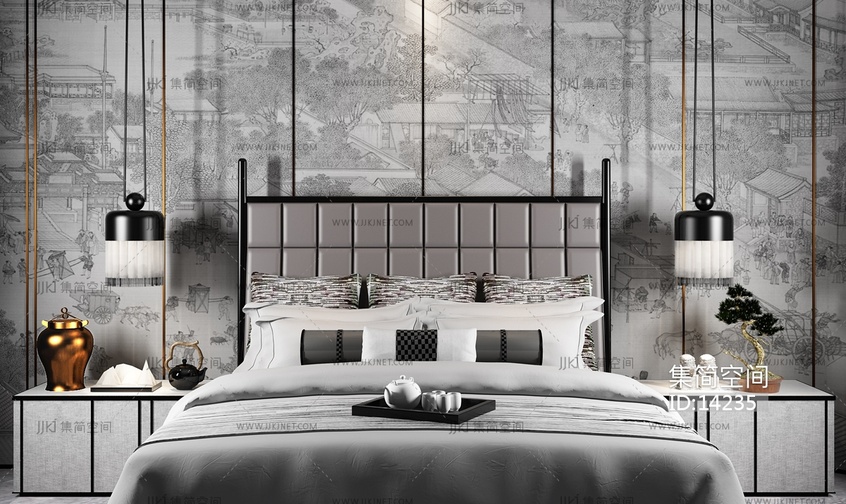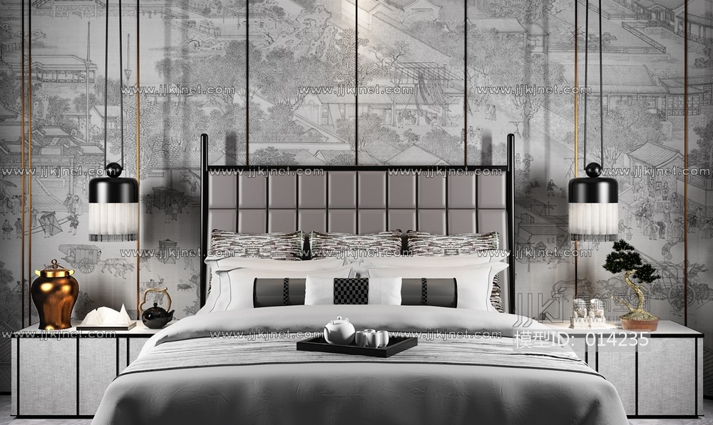 H06-1225新中式床床头柜 3d模型下载 [模型ID:14235]