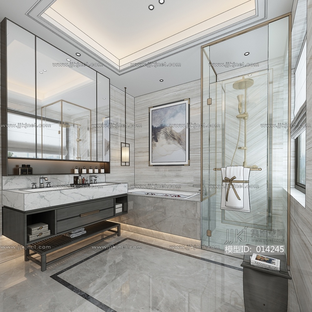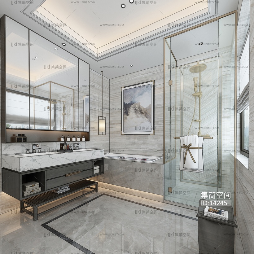 H09-1213新中式卫生间 3d模型下载 [模型ID:14245]