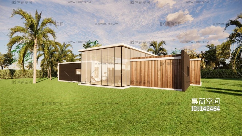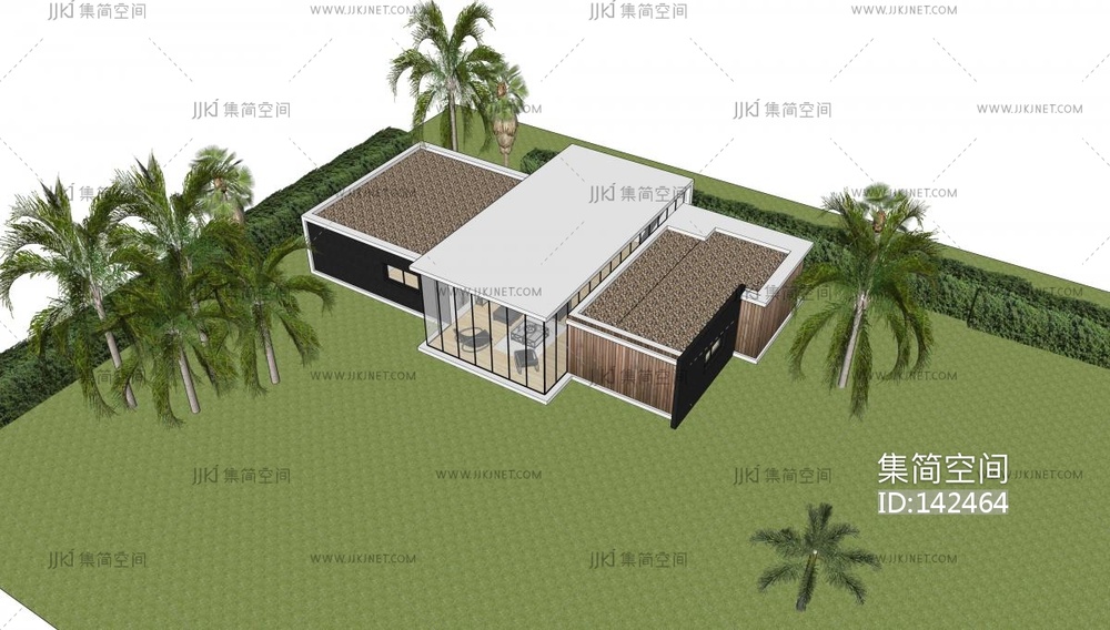 一层开敞别墅 su草图模型下载 [模型ID:142464]