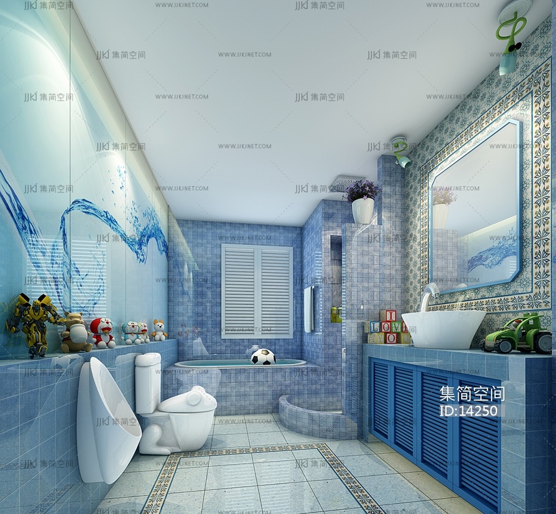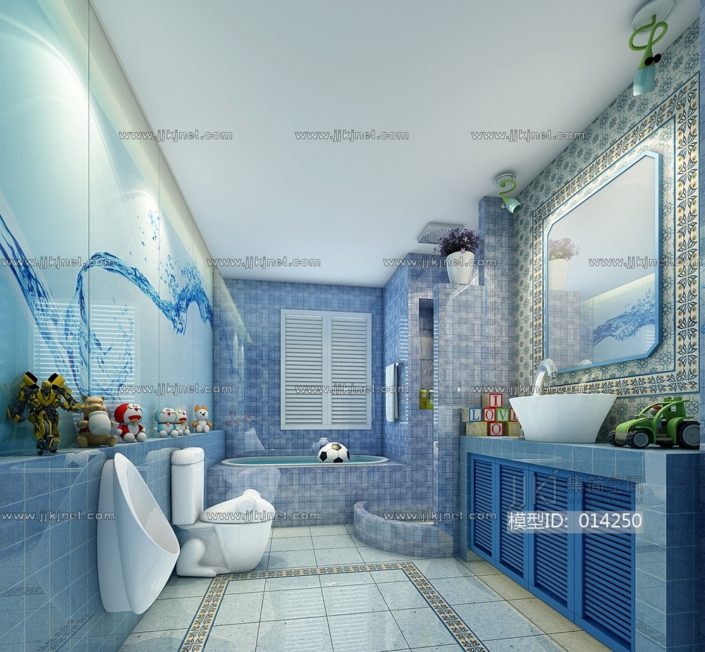 H18-1213地中海儿童房卫生间 3d模型下载 [模型ID:14250]