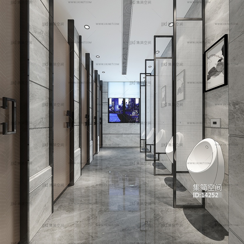 H19-1213现代公共卫生间 3d模型下载 [模型ID:14252]