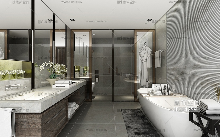 H29-1213现代新古典卫生间浴缸陈设 3d模型下载 [模型ID:14259]