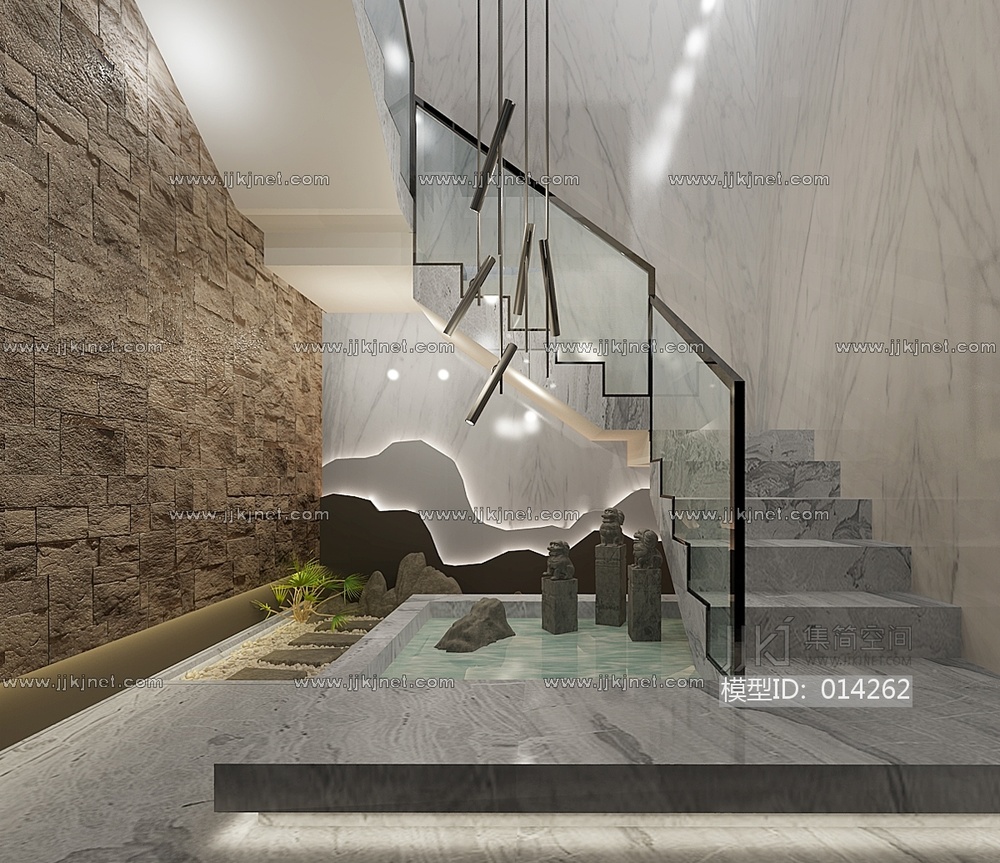 H33-1213新中式楼梯间景观 3d模型下载 [模型ID:14262]