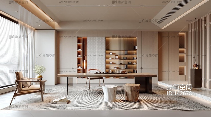 -新中式茶室 屏风 单人沙发组合 3d模型下载 [模型ID:142678]