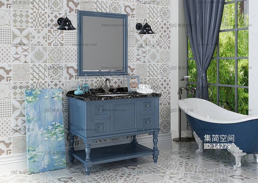 H49-1213美式乡村浴室柜洗手盆卫浴柜浴缸 3d模型下载 [模型ID:14279]