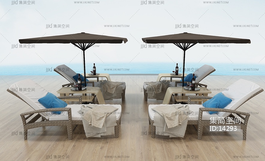 H10-1218阳光海岸躺椅户外躺椅遮阳伞沙滩椅 3d模型下载 [模型ID:14293]