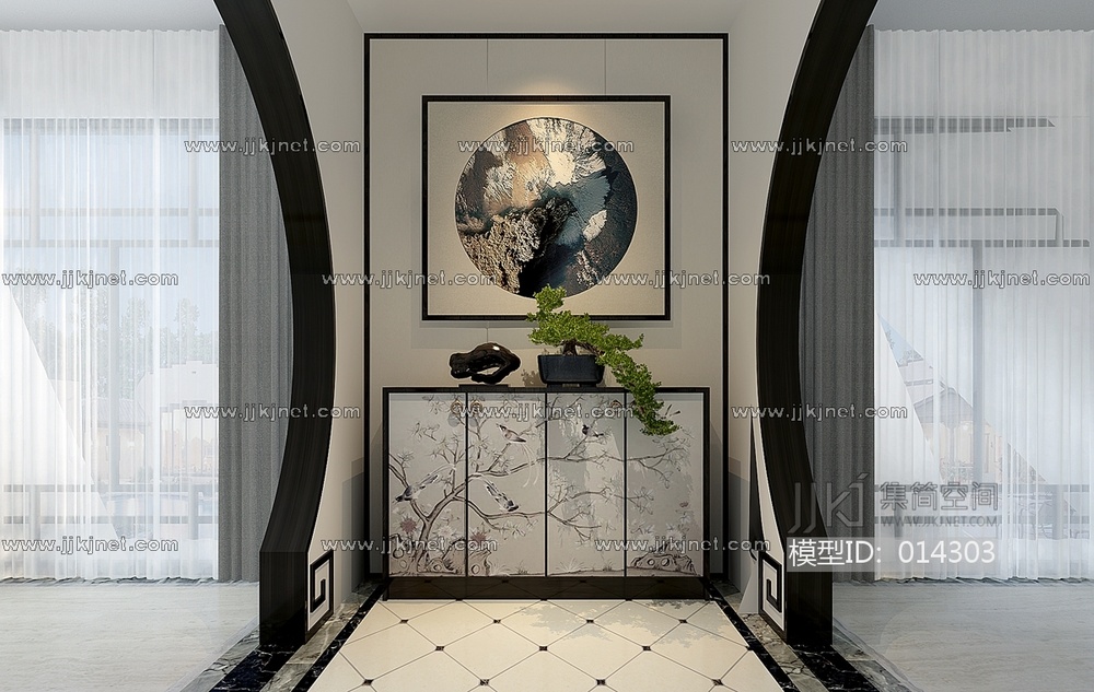 H02-1220新中式装饰柜玄关柜组合 3d模型下载 [模型ID:14303]