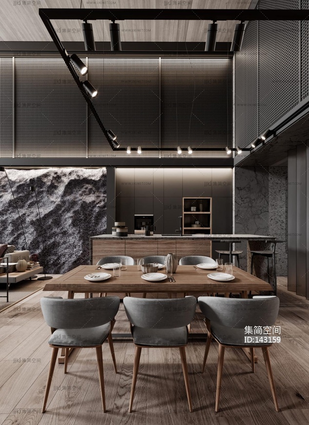 现代客厅餐厅,家装整体方案3d模型 3d模型下载 [模型ID:143159]