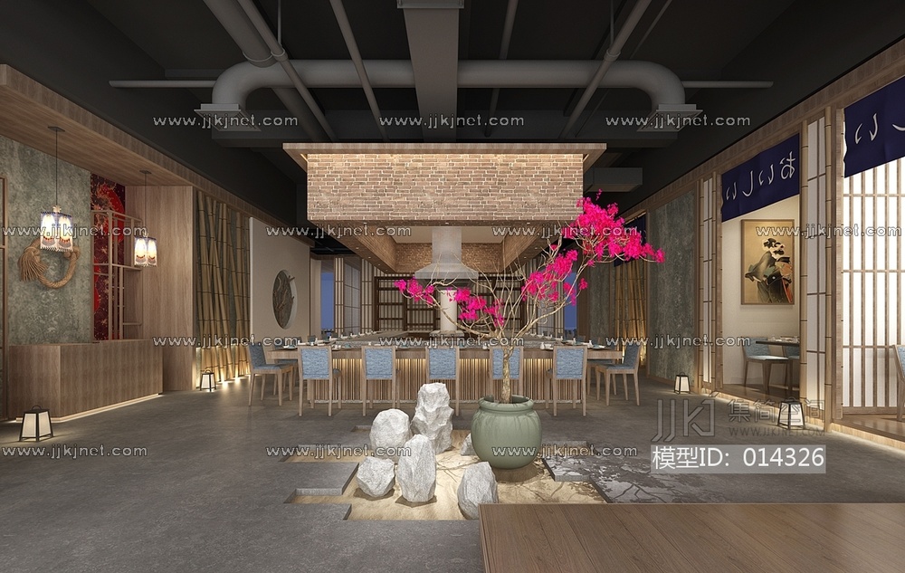 H30-1220日式餐厅日本料理石头摆件樱花铁板烧 3d模型下载 [模型ID:14326]