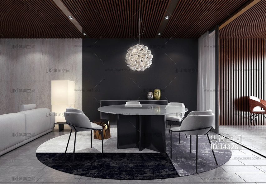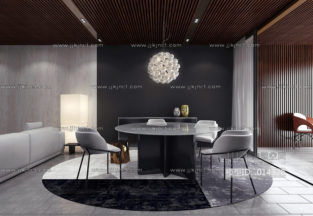 H34-1220品牌家具》意大利》Minotti01圆桌圆形餐桌椅吊灯 3d模型下载 [模型ID:14328]