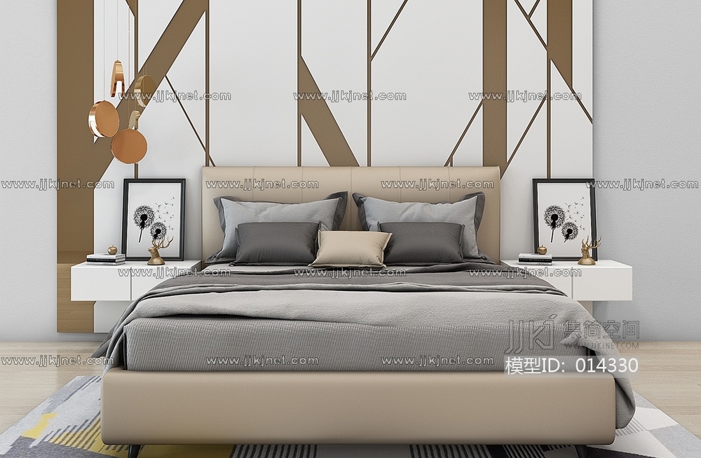 现代布艺双人床3d模型下载