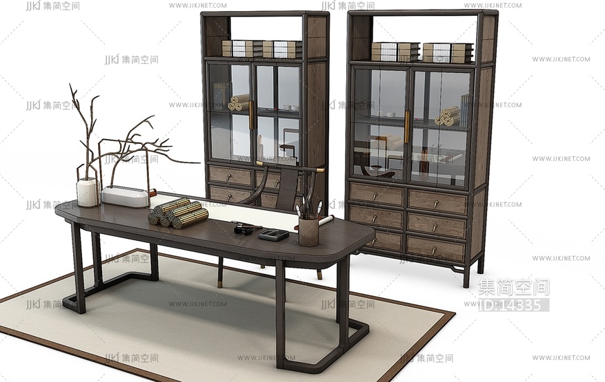 H08-1222新中式书桌椅书柜书房 3d模型下载 [模型ID:14335]
