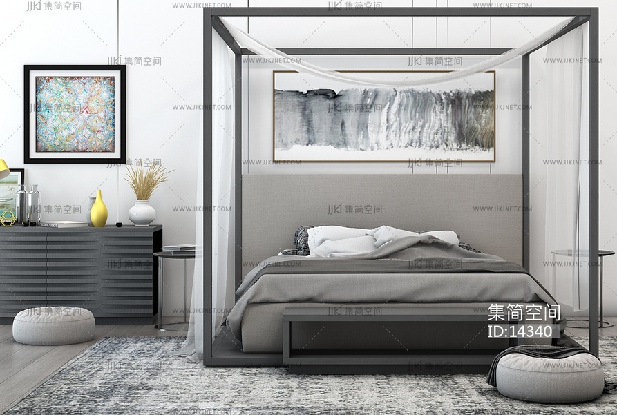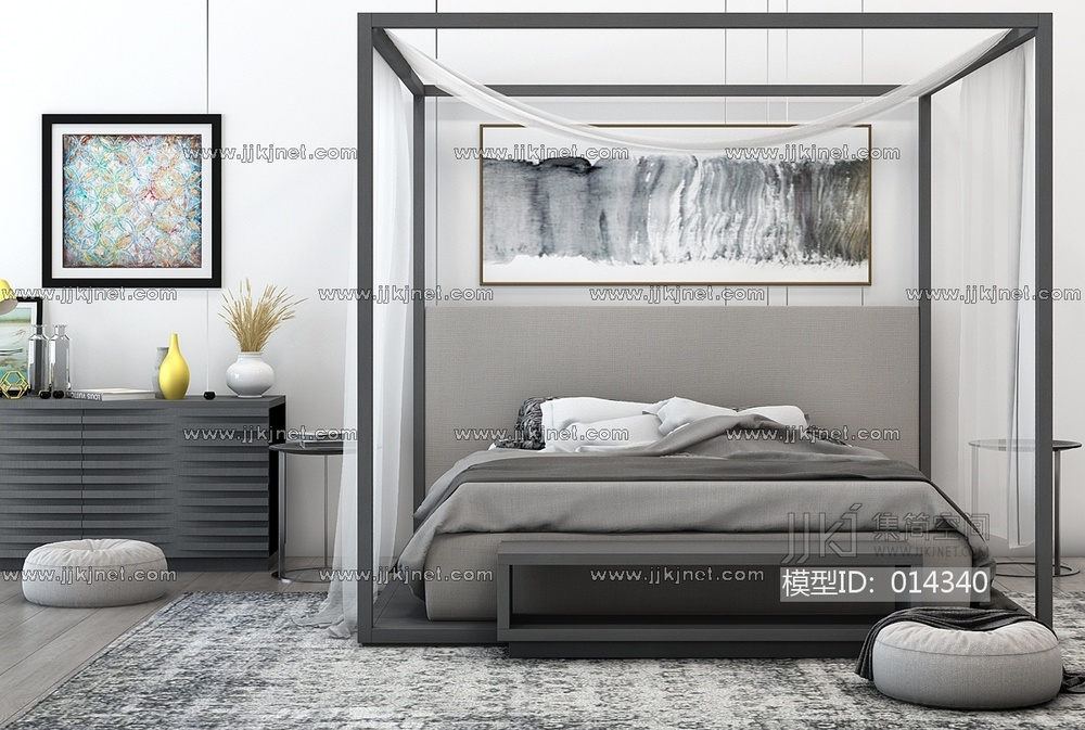 H13-1222新中式床架子床组合 3d模型下载 [模型ID:14340]