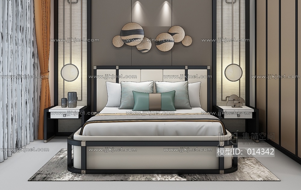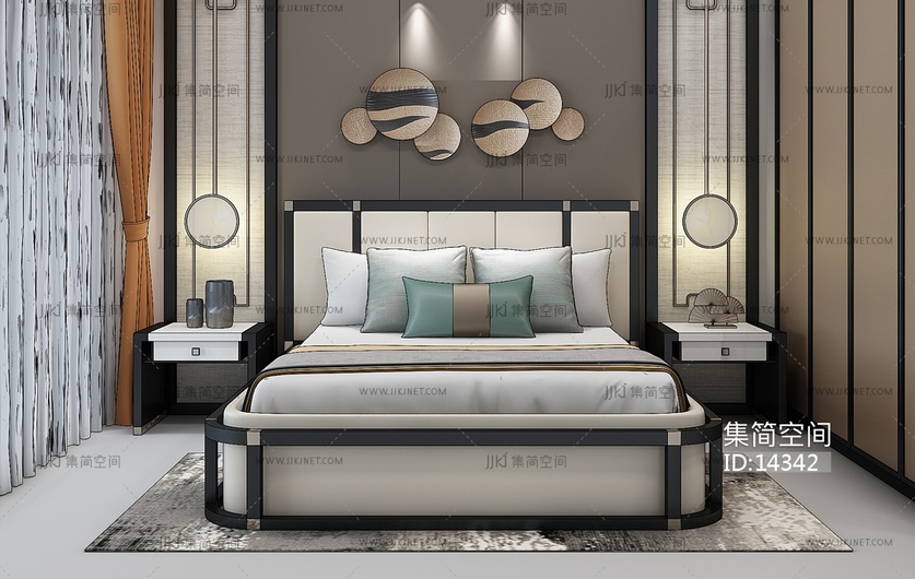 H15-1222新中式床床头柜挂件组合 3d模型下载 [模型ID:14342]
