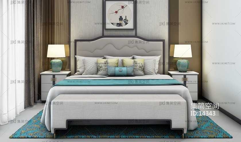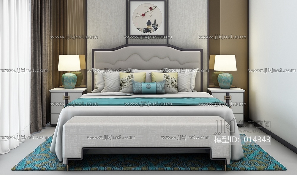 H16-1222中式床床头柜组合 3d模型下载 [模型ID:14343]