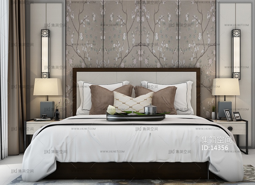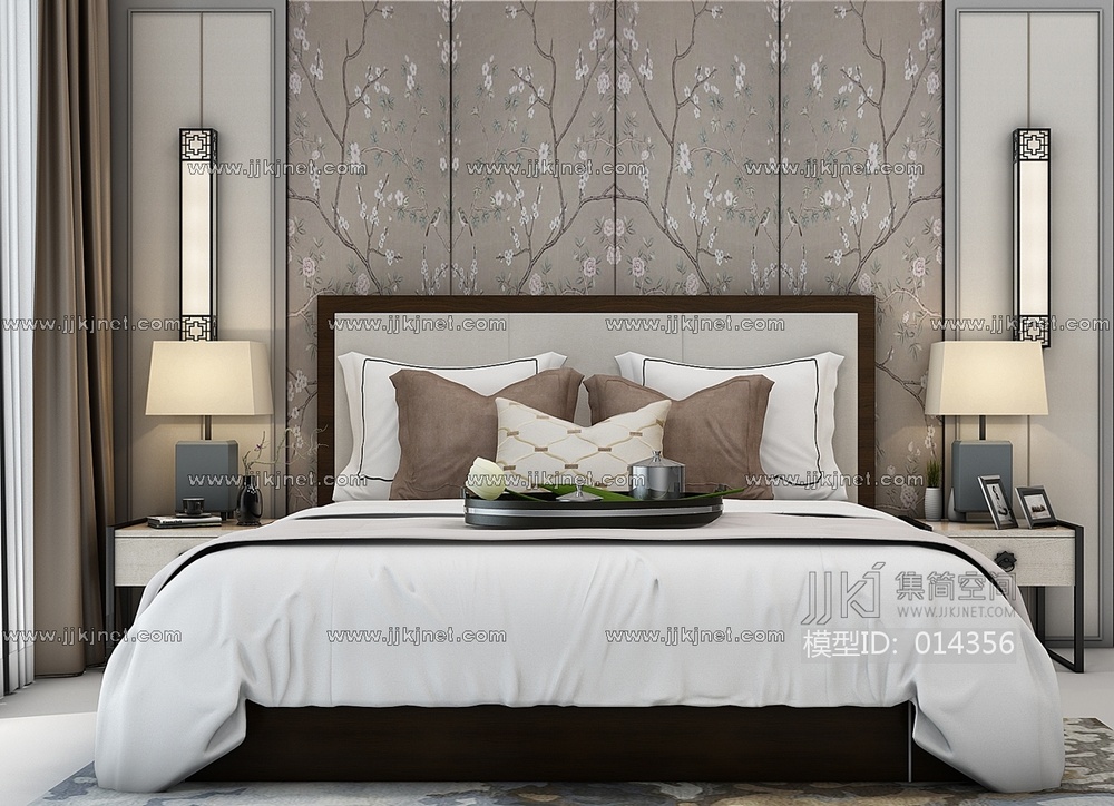 H29-1222中式床床头柜壁灯 3d模型下载 [模型ID:14356]
