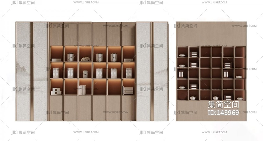 -新中式书柜 3d模型下载 [模型ID:143969]