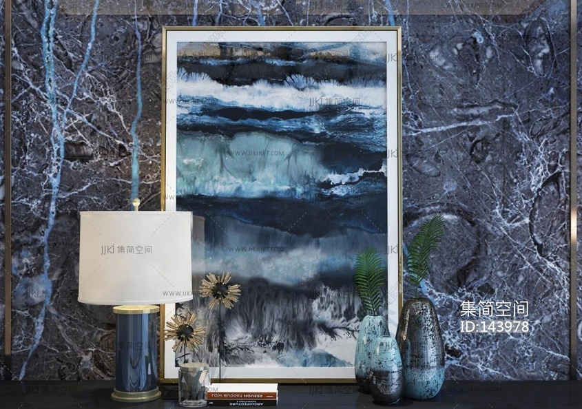 后现代台灯花瓶花卉装饰画组合 3d模型下载 [模型ID:143978]