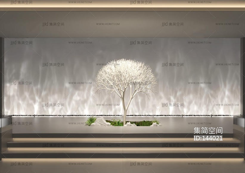 现代水波纹灯造景景墙3D模型下载 3d模型下载 [模型ID:144021]