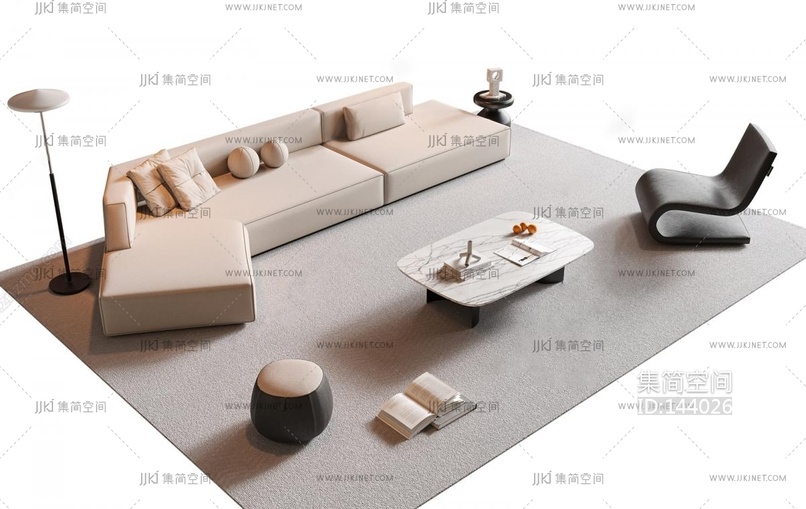 03-奶油中古沙发组合_沙发茶几组合_异形沙发_金属茶几_单人休闲椅_模块沙发3D模型3d模型下载