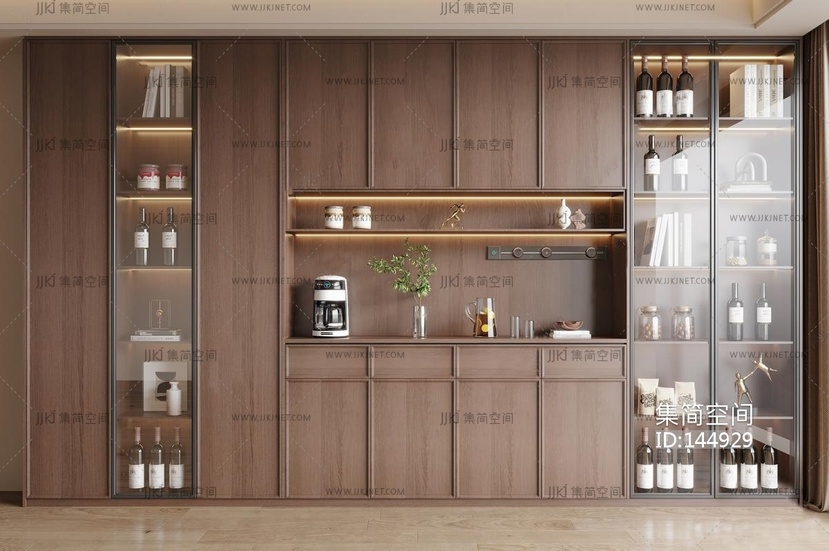 现代中古风餐边柜 3d模型下载 [模型ID:144929]