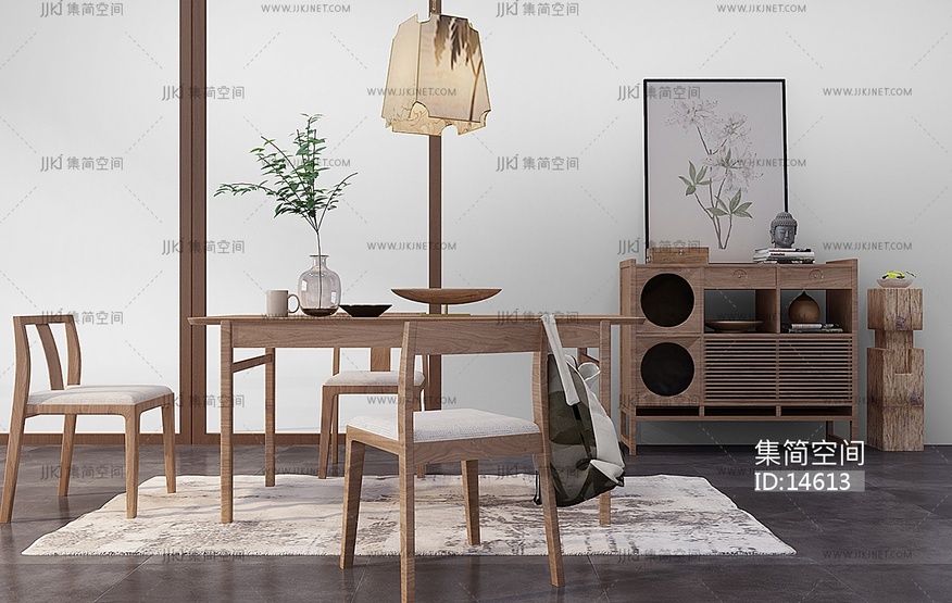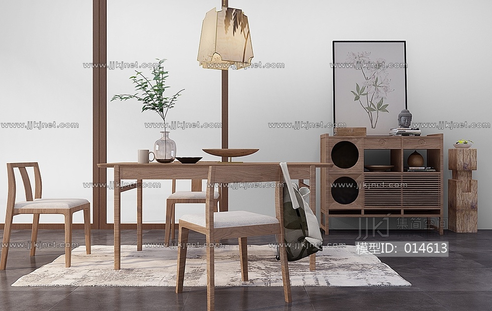 Z30-1205新中式餐桌椅餐边柜吊灯 3d模型下载 [模型ID:14613]